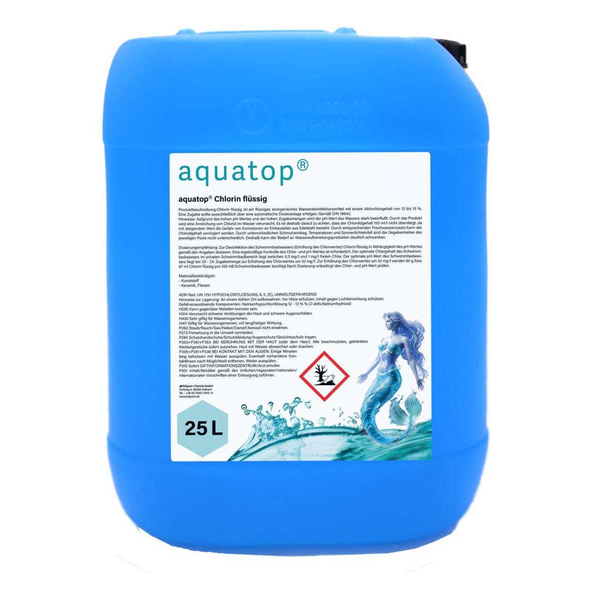 Unverdünnt mit Hilfe einer Dosieranlage ins Schwimmbadwasser einspeisen.